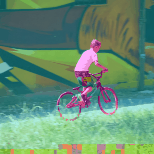 Video Segmentation Visualizations of predicted segments from ISA attention masks across frames. Our method discovers and tracks distinct object instances using Hungarian matching—competitive unsupervised performance while enabling generation.